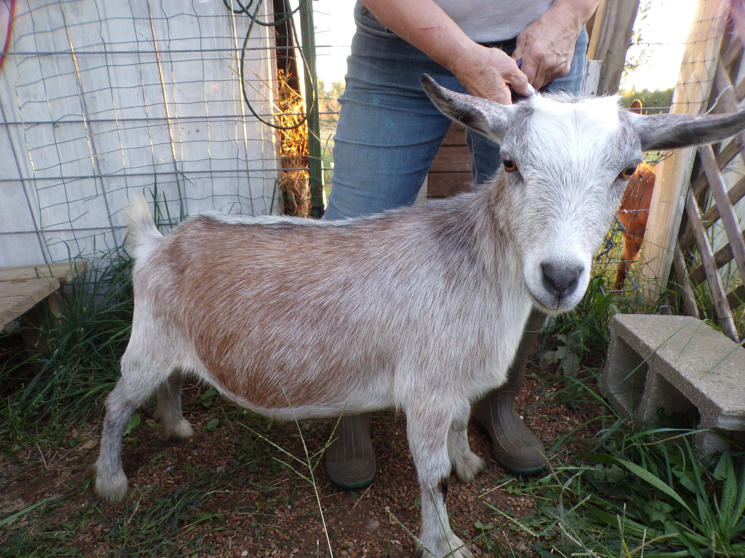 This stunning boy is going to be something. He is already built like a tank, and to tell you the truth, I would not be unhappy if he stayed. His dam is an excellent milker and is a fantastic mother. His sire is one of my favorites and always throws amazing kids. His daughters are excellent milkers, and his son, whom I have, will have kids on the ground this year. This boy could really be something, so do not miss out, because he has been a standout from the very beginning.